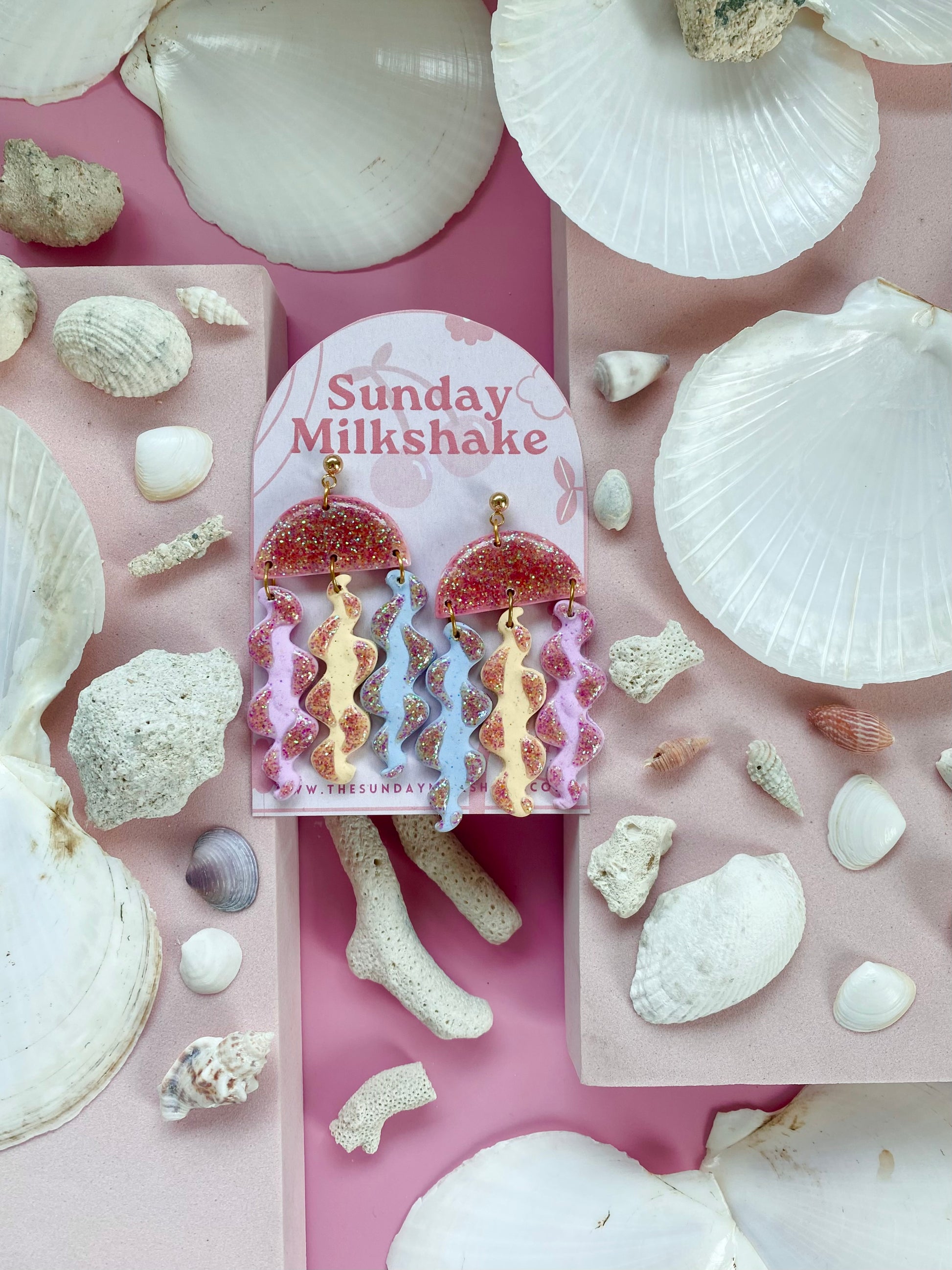 Hello! I am a unique pair of polymer clay and resin earrings. Take me home or purchase me as a gift to a loved one. I am extremely lightweight and bring a pop of color and fun to your simple OOTD that will turn heads. I am a conversation starter and a reflection of your fun personality. Your purchase also shows your appreciation for handmade, local goods and eye for art.